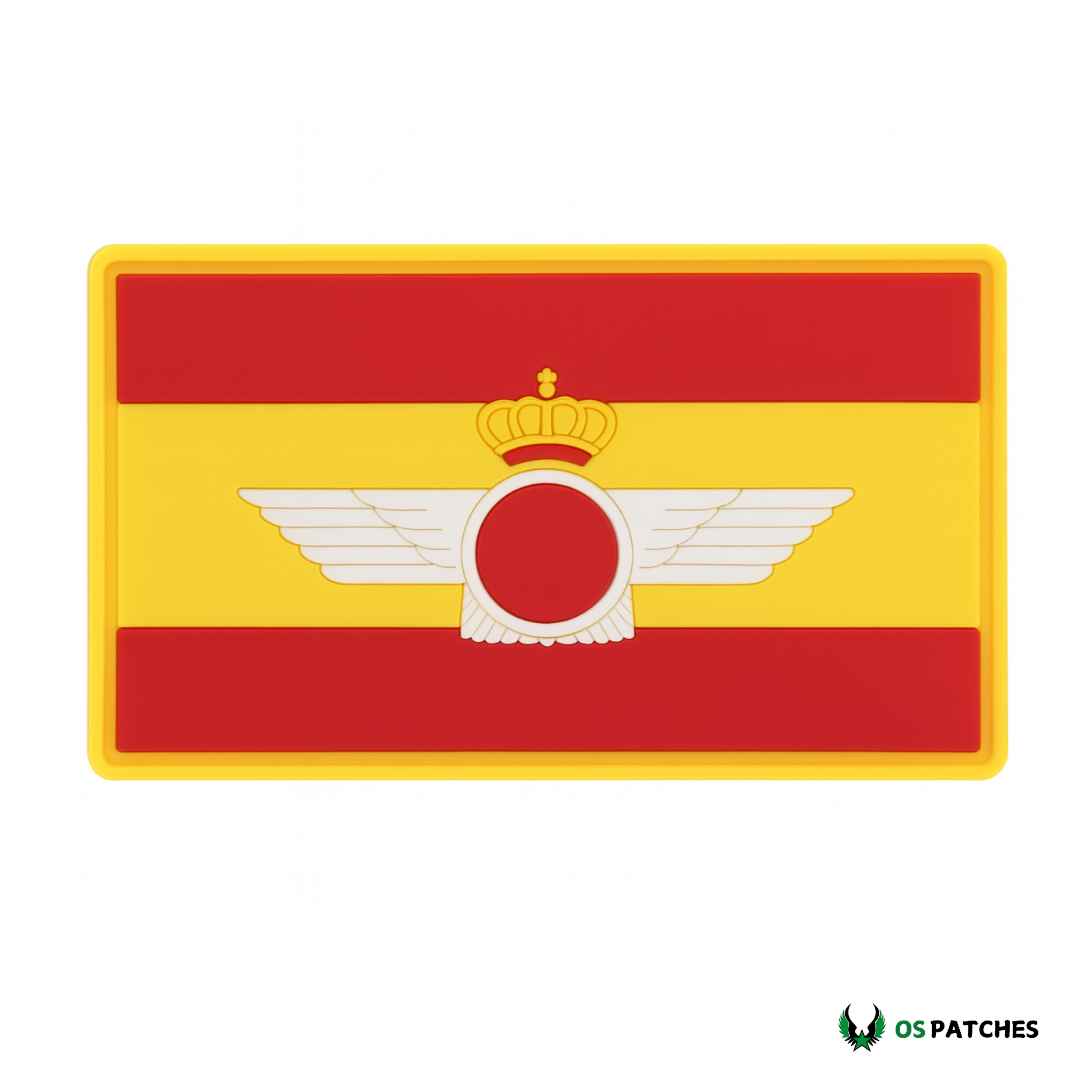 Parche de PVC con la bandera de España y el emblema de la Fuerza Aérea. Fabricado en material flexible y resistente, soporta agua, calor y condiciones extremas sin perder calidad. Su diseño rectangular con colores vivos y el símbolo alado con corona lo convierten en un distintivo ideal para uniformes militares, mochilas tácticas y colecciones de aviación.