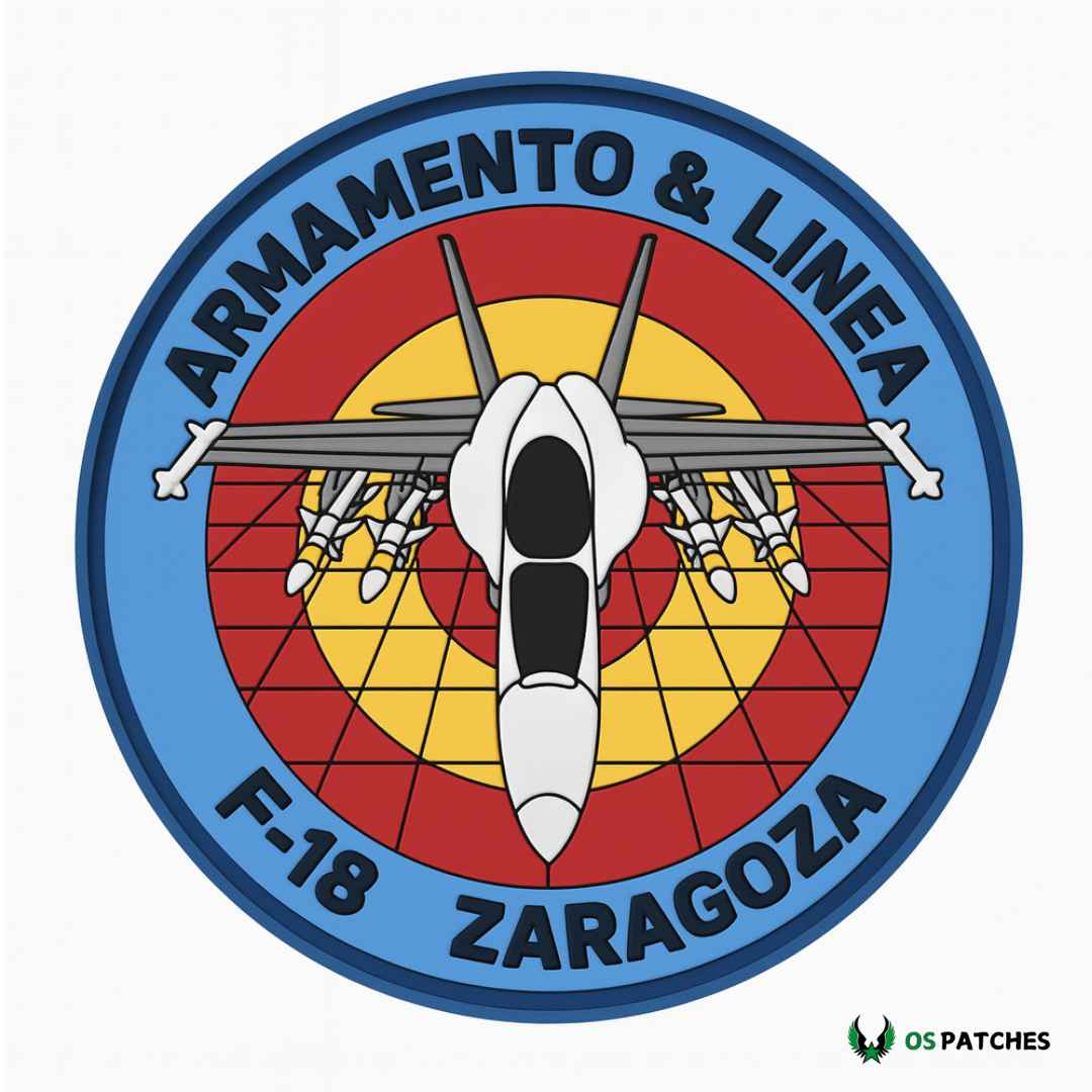 Parche de PVC con diseño del F-18 Zaragoza Armamento & Línea, inspirado en el avión de combate F/A-18 Hornet. Elaborado en PVC de alta calidad, es resistente al agua, al calor y al desgaste. Su diseño incluye la escarapela de España y detalles en relieve que resaltan la potencia del F-18. Perfecto para uniformes militares, mochilas tácticas o colecciones de aviación.